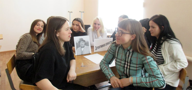 18 апреля студенты колледжа им. Аносова с педагогом Н.С. Дымковой и библиотекарями ООД ЦГБ Жуковой Т. и Катаевой А. открыли два литературных агентства «Ш. Хомса» и «Э. Пуаро».