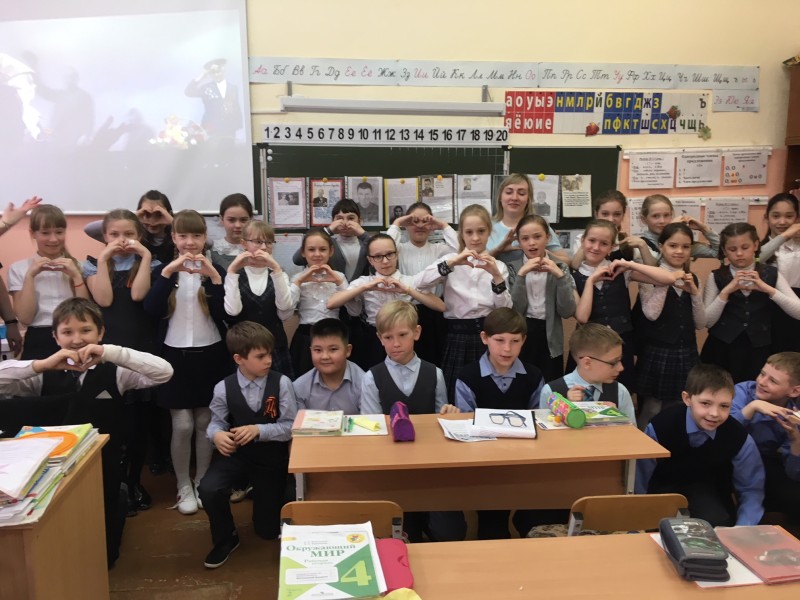 Заключительным аккордом нашего мероприятия стали напутственные слова ведущих ребятам о том, чтобы достойно встретить День Победы, сказать спасибо ветеранам и всем героям, не вернувшимся с войны, хотя бы мысленно. Как важно, чтобы у нас у всех над головами было только мирное небо и светило солнце. Под клип «Пусть всегда будет солнце» все вместе спели эту замечательную песню, сфотографировались на память о Великой Победе. В заключение посмотрели портреты своих прадедушек и прабабушек под песню «Прадедушка, прадедушка он всю прошел войну».