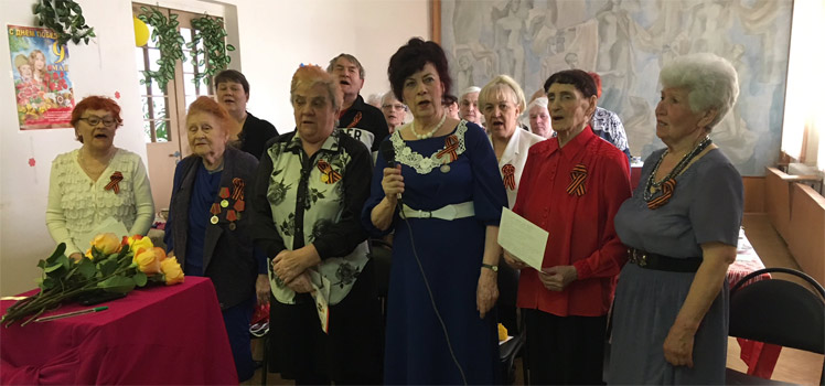 Вспомнили и помнят все годы войны. И летний день 41 год, школьный выпускной, и страшные слова о начале войны. Прозвучали песни военных лет, которые все гости исполняли хором: «Священная война», «Катюша», «Темная ночь», «Смуглянка» и, конечно, «День Победы». Слова искренней благодарности и поздравления с Днем Победы прозвучали от заведующей библиотеки №21 «Дом друзей» Ольги Владимировны Макаровой в адрес всех членов клуба «Бодрость» и Зинаиды Николаевны Муратовой, председателя клуба, вдохновителем и украшением праздничной встречи. Всем присутствующим гостям - цветы, которые вручили учащиеся школы№21, читатели нашей библиотеки, Бейщук Лиза, Булгакова Ксения.