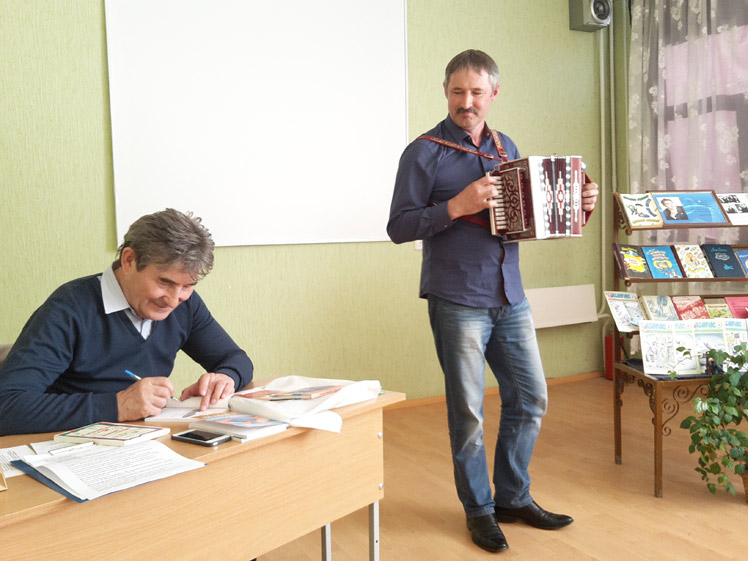 С приветственным словом выступила заместитель директора ЦБС Наталья Соколова и вручила памятный сувенир о встрече, в ответ почётный гость подарил библиотеке свои новые книги на болгарском, английском языках. Теперь в нашей библиотеке можно читать произведения знаменитого юмориста не только на русском, башкирском, татарском, но и на иностранных языках.