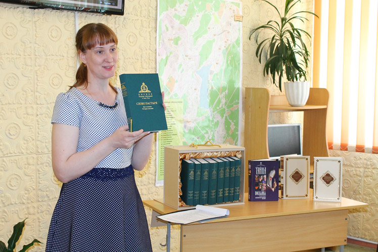 В завершении встречи архимандрит Иннокентий (Третьяков), по благословению епископа Златоустовского и Саткинского Викентия, в преддверии Общероссийского дня библиотек передал в дар Центральной городской библиотеке собрание трудов Святейшего Патриарха Московского и всея Руси Кирилла.