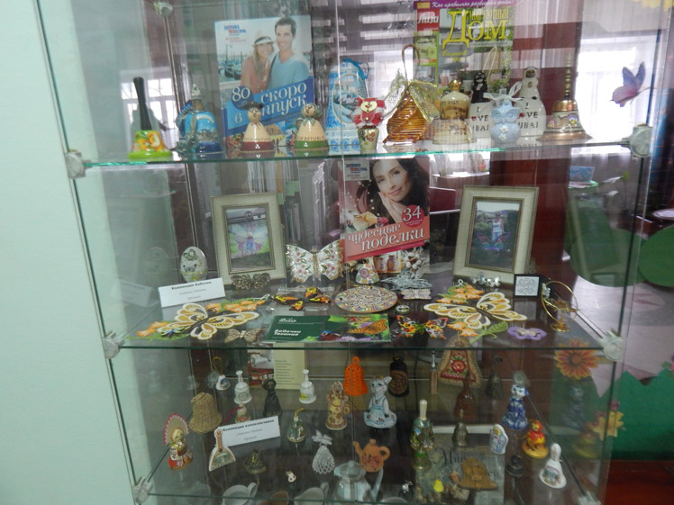 25 мая накануне Дня библиотек в фойе 2-го этажа ЦГБ оформлена выставка - хобби, подготовленная ведущими библиотекарями сектора. Крохина С.Ю. представила 2 коллекции: бабочек и колокольчиков. Эти сувениры из разных уголков России и других стран привозят близкие, друзья. Очень плодотворными в это плане стали различные фестивали народных ремесел: Бажовский, Бушуевский и др.