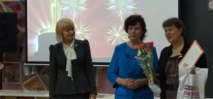 В рамках этого мероприятия, которое приурочено к Общероссийскому дню библиотек, стало уже доброй традицией дарить подарки от Собрания депутатов ЗГО. В этом году – это современный мультимедийный проектор, с четким и ярким изображением, большой подвесной экран, на котором все и всем видно. Это – мечта библиотекарей – организаторов всех массовых мероприятий для наших читателей. Воплотить мечты в реальность стало возможным благодаря Председателю Собрания Депутатов Златоустовского городского округа Алексею Муратовичу Карюкову, давнему и хорошему другу библиотеки «Дом друзей». Алексей Муратович поздравил всех собравшихся с праздником, поблагодарил коллектив библиотеки за творческую работу с читателями всех возрастов, а особенно за работу с читателями, имеющими ограничения по здоровью. Почетные гости мероприятия - Т.В. Накоскина, руководитель исполкома местного отделения партии «Единая Россия», Л.И. Ветошкина, председатель Златоустовского городского совета ветеранов, которые пришли с приветственными адресами и благодарственными письмами для самых активных лидеров клубов, работающих в библиотеке. Это Муратова З.Н., клуб «Бодрость», Бакеева З.С., клуб «Добровольцы», Шарапова Л.В., председатель городского Общества инвалидов, члены которого активисты библиотечного клуба «Возрождение».