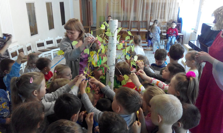 Дети детского сада № 71 побывали на необычном празднике под названием «Березка - белая подружка». В гости к ребятам пришли библиотекари СКО ЦГБ Кондратьева Н.П., Мальцева Л.Ю., Мозглякова М.П., которые рассказали о русских народных традициях, связанных с березой. Дошколята украшали дерево ленточками, водили хороводы. Каждый присутствующий загадал желание и позвонил в колокольчик. Мальчики участвовали в перетягивании каната, затем все вместе отвечали на веселые познавательные вопросы о правилах поведения в лесу. Интерактивная игра «Животные и их дети» особенно понравилась ребятам. В заключение праздника дети прочитали березке стихи и дали обещание встретиться на следующий год.