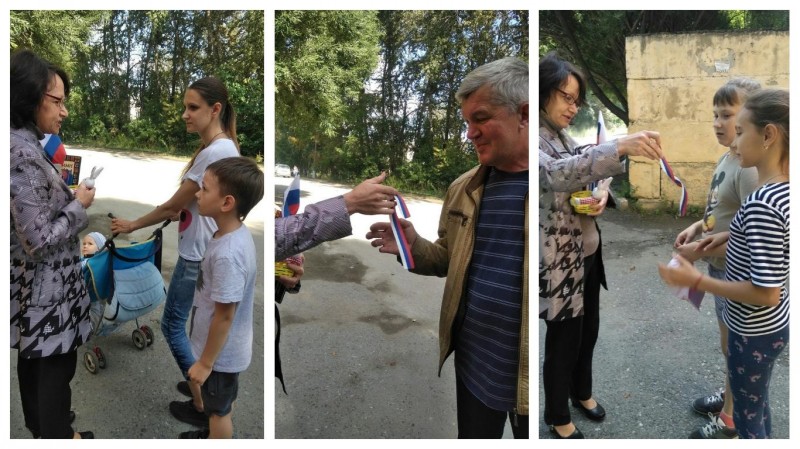 В 1991 году 19 августа триколор был впервые поднят над Зданием Российской Федерации, а 22 августа был утвержден, как Государственный флаг Российской Федерации. В1994 году 22-е августа стал Днем Российского флага. Об этом библиотекари рассказывали с прохожими и задавали вопросы викторины на знание толкований цветов государственного символа. Всем взрослым участникам флешмоба были вручены ленточки с цветами российского флага, а маленьким - сладкий презент.