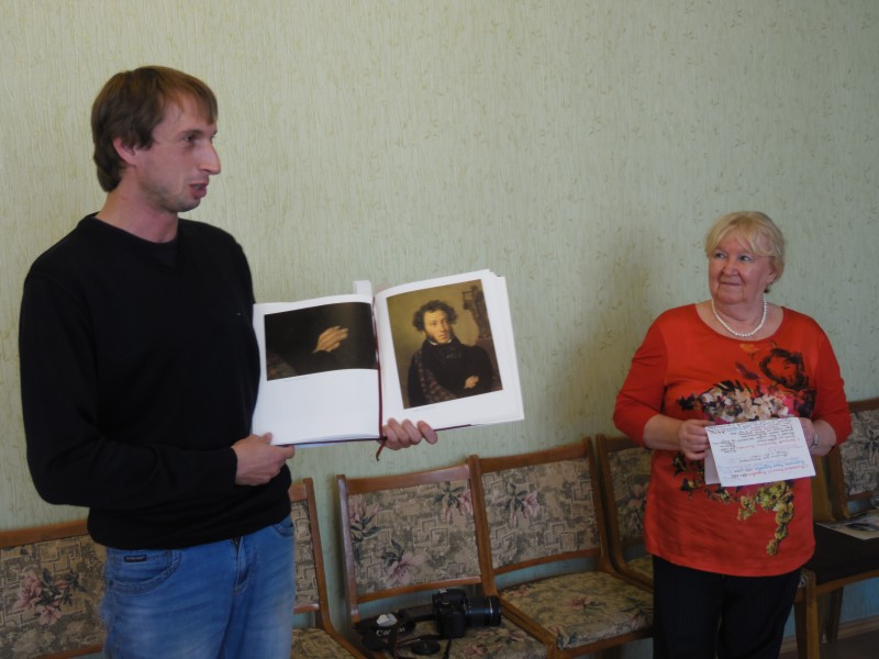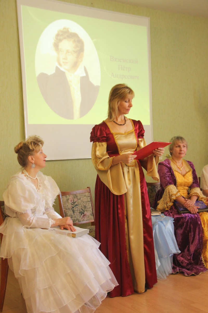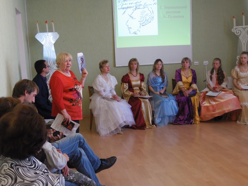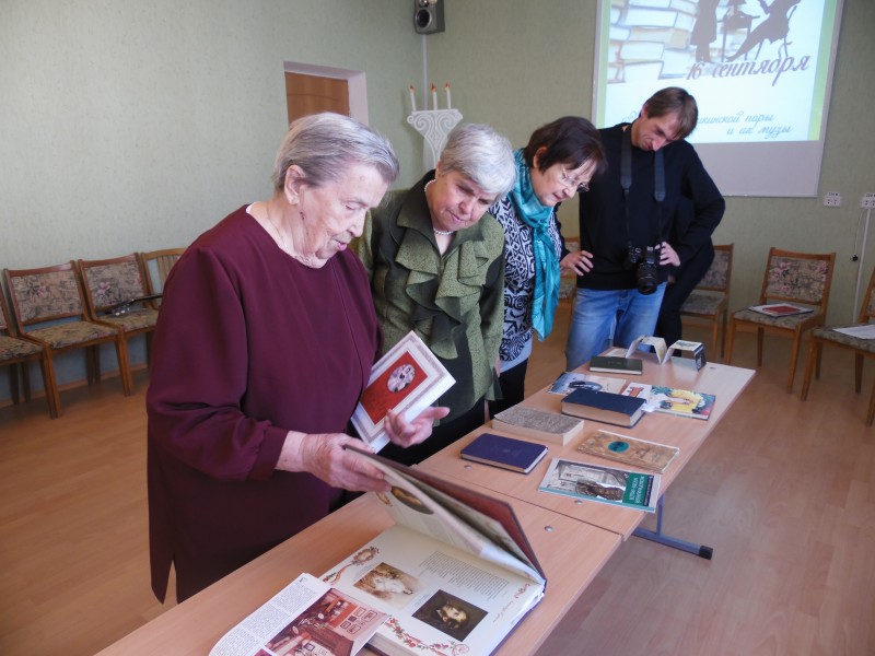 Звучало много любопытных фактов, личностного отношения ведущей к героям разговора, впечатлений Н.Галавтиной из поездок и посещений музеев классиков литературы. Участники клуба исполняли стихи, песни и романсы, написанные на стихи поэтов-романтиков. Художник и педагог Леонид Токмаков, обращаясь к книжной выставке, рассказал о замечательном художнике О.Кипренском, написавшем портреты поэтов и прекрасных дам, даривших вдохновение поэтам пушкинской поры.