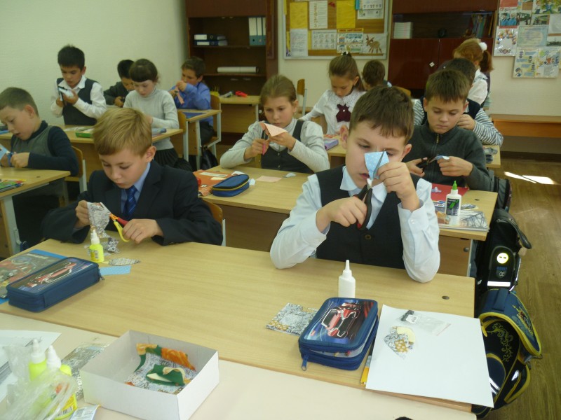 24, 25 сентября состоялись очередные занятия в Лаборатории творчества. Детям нравится, когда к ним приходят из библиотеки №12. Это значит, будет интересно и увлекательно. Елена Алябышева рассказали ребятам из школы №9 о необычном декоративно – прикладном творчестве японцев. Кинусайга – картины из лоскутков. Японцы славятся своей способностью возводить любую деятельность в ранг искусства. Оригами, икебана и многие другие виды творчества. Желание повторно использовать довольно дорогую ткань старого кимоно, превратилось в искусство создания великолепных картин. После объяснения библиотекарями, дети сделали заготовки из ткани, наклеили на бумагу и получился павлин.