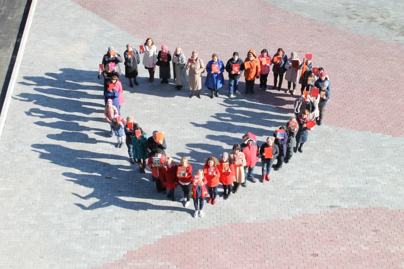 По команде ведущего все выстроились по линии очерченного сердца на асфальте обновленной площади Центральной городской библиотеки, подняли над головой книги. Фотографу оставалось только выбрать удачный ракурс, чтобы запечатлеть «живое сердце». Главный атрибут флешмоба - красный цвет: он присутствовал в одежде; в руках каждого участника - книга с красной обложкой.