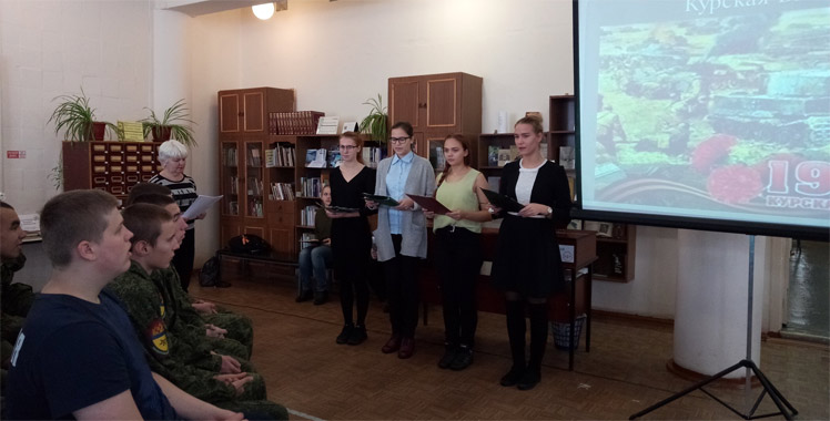 Ярко и выразительно выступили старшеклассники Елена Перова, Дарья Быкова, Кристина Бабушкина, Юлия Крапива, Иван Попов, Дарья Рожкова, рассказав об одном из крупнейших и решающих сражений Великой Отечественной войны. Библиотекари подготовили информацию об участии южноуральцев в битве и представили художественные произведения о Курской дуге.