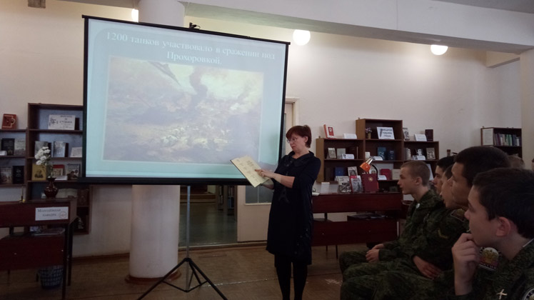 14 октября учащиеся 10-х классов МАОУСОШ № 4 вместе с преподавателем истории и обществознания Мариной Борисовной Свитко приняли участие в работе лектория выходного дня «Я – патриот». Лекторий для кадетов Златоустовского индустриального техникума им. П.П. Аносова проводится на базе библиотеки №5 «Исток». Очередное занятие «Ты помни, никогда не забывай» было посвящено 75-летию Курской битвы.