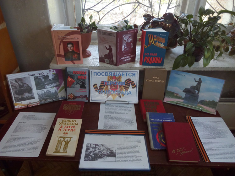 10 октября в библиотеке №1 состоялось мероприятие «Посвящается героям Танкограда», на котором говорилось о помощи уральцев, приблизивших День победы в 1945 году, о дыхании огненных цехов Магнитки и Челябинска, УралАЗа и ЧМЗ, о добровольцах Уральского гвардейского танкового корпуса, также для учащихся была представлена одноименная книжная выставка.