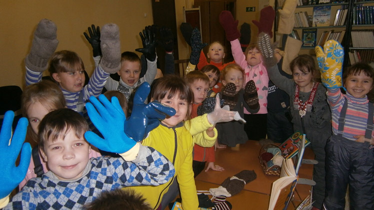 Много необычных и красивых варежек было представлено в презентации, немало увидели их на библиотечной выставке – и старинных, и современных. В процессе игры «Кому нужны такие рукавицы?» вспомнили разные профессии, в которых без них не обойтись (повар, маляр, рабочий, парикмахер, врач). Прозвучали и литературные произведения, посвященные этому необходимому предмету одежды – стихи, сказка «Рукавичка».