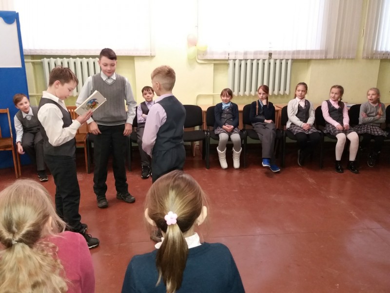 Школьники отправились в игру - путешествие вместе с классическими сказочными героями: золотой рыбкой - А.С.Пушкина, веселым мальчуганом Незнайкой - Н.Носова, встретились с домовенком Кузькой – Т.Александровой и многими другими героями на страницах любимых книг. Дети декламировали отрывки из любимых сказок, изображали полюбившихся героев. Смогли увидеть их на экране, ставших уже классикой мультипликационных фильмов. В заключение ушли домой с полюбившимися сказками, чтобы не только перечитать их, но и серьезнее подготовиться к конкурсу.