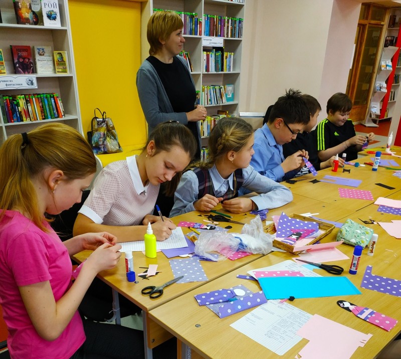 И, так как 2018 год был объявлен «перекрестным» годом России и Японии, сотрудники зала провели мастер-класс по изготовлению книжных закладок из бумаги – японских мальчика и девочки.