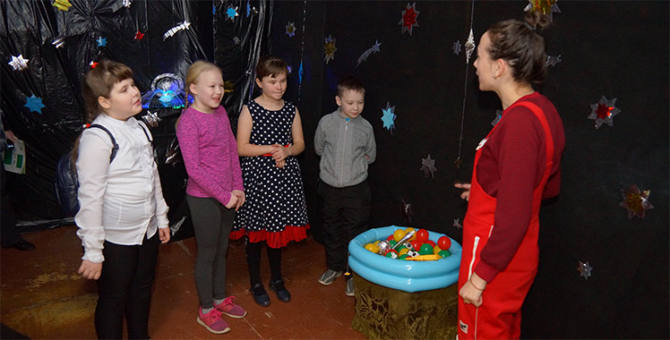 В начале сказочной детективной истории супер сыщики поделили учащихся на команды, поставили перед ними задачу найти «преступника» и вернуть героев в свои родные сказки. Какие только препятствия и задания не стояли на пути юных сыщиков! На площадке под названием «Мокрая история» их встречала Алиса Селезнева из книги «Тайна третьей планеты», в чьей сказочной стране перепутались все сказки. И она оказалась в книжке Николая Носова «Незнайка на луне». Ребят ждали испытания, справившись с которыми они помогли Алисе вернуться на землю вернуться на Землю. Да еще и получили частичку пазла - фоторобота «преступника». Следующая площадка не менее интересная и неожиданная – «Тайна проворной бабки», где участники попадают в избушку на самых настоящих «курьих ножках». Но, вопреки ожиданиям, там их ждала вовсе не Баба-Яга, а уже совсем немолодая «Принцесса на горошине». Со слезами, криками и воплями, она просит вернуть ее обратно в сказку. Жаль только, что она все забыла, да еще и читать не умеет. Кот Ученый, который тоже живет с ней, предлагает найти рецепт«Возвратного эликсира», который состоит из 10 ингредиентов (болотные огоньки, драконий камень, вяленая змея, паучья тень и т.д.). Ингредиенты находятся в самых разных местах комнаты. Задача детей разыскать ёмкости, достать нужное количество ингредиентов и сложить всё в котелок. Детям приходится приложить некоторые усилия, чтобы добыть необходимый ингредиент (откапать в песке, достать из гидрогеля, определить наощупь, нарисовать, подумать логически). Кот и Принцесса помогают (если дети маленькие) или запутывают детей, если дети постарше. Конечно, рецепт эликсира найден, получив заветный пазл, юные детективы торопятся на площадку « Операция Камушек». В красивом зеленом лесу стоит огромный придорожный камень, от которого расходятся три дороги, но ребят ждал – Гений Евгеньевич Чудаков, друг Фиксиков. Он даже и не понял, как сам очутился в этой сказке. На камне зашифрованная запись в виде «пляшущих человечков», которую дети расшифровали, нашли волшебные артефакты и догадались прочитать фразу в зеркале, с помощью которой профессор вернется домой. Площадка «Секрет новогодних минут» показала ребятам, что настоящие сыщики должны быть сильными, ловкими, быстрыми. На стене огромные Часы, минутная стрелка которых показывает, что до 12 часов осталось 5 минут. Вот за это время надо пройти все физические задания: эстафеты, лабиринты, тест на отличную зрительную память. Но и здесь не все так просто. На площадке участников ждут Атаманша и Разбойник из «Бременских музыкантов», которые всячески пытаются запутать и запугать участников. И, тем не менее, все испытания пройдены, команды возвратились в красиво украшенный зал, где вместе с Фу Фу и Кис Кис собирают собираю пазл, на котором видят, что это «Белладонна» из известного мультика про Фунтика.
