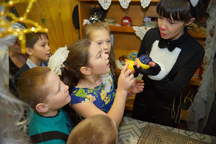 Супер сыщики Фу - Фу и Кис - Кис благодарят детей за отличную работу, смекалку, взаимовыручку и предлагают танцевальный новогодний флэш-моб. В заключение праздника выходит Зимушка - Зима, которая поздравляет всех с наступающим Новым 2019 годом, вручаются подарки и, конечно, фотосессия с любимыми героями квеста.