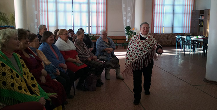 Мастерицы смогли проверить себя, насколько хорошо они знают приметы и традиции, связанные с платком и показать необычные приемы завязывания шали. Рукодельницы вспомнили известные стихи и песни о шали. В их исполнении прозвучали песни: «Оренбургский пуховый платок», «Подари мне платок», «Это темно–вишневая шаль», а так же веселые частушки. Они покружились в хороводе под русскую народную мелодию и смогли похвастаться своими изделиями в танце с шалями.