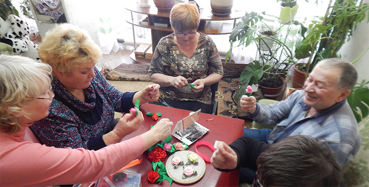 6 февраля сотрудник сектора комплексного обслуживания ЦГБ познакомила посетителей отделения дневного пребывания социальной защиты населения с техникой «Канзаши».