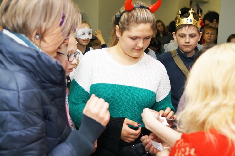 Совсем маленьким участникам Библионочи пришлась по душе площадка детского сектора «Маsk–sаМ», где каждый желающий смог проявить свою фантазию и самостоятельно изготовить оригинальный элемент маскарадного костюма.
