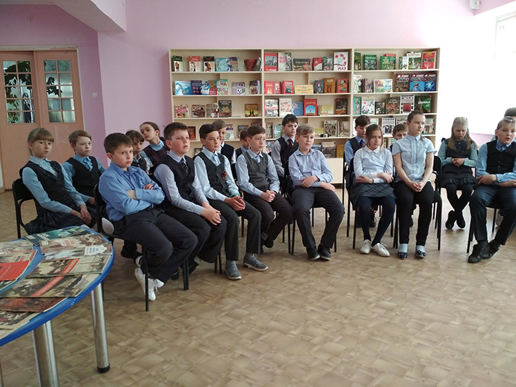 6 мая в рамках Международной акции «Читаем детям о войне» накануне всеми любимого праздника Дня Победы сотрудники детской библиотеки №6 пригласили учеников 4-го класса на исторический час «Победный май: живём и помним!». Мероприятие началось с представления книги М.Чернявского «Огненная баллада» о подвиге лётчика Александра Мамкина, который в 1944 году, рискуя своей жизнью, перевозил детей, обречённых фашистами на смерть, из детского дома в оккупированном Полоцке на Большую землю. В ходе чтения отрывков из произведения ребята комментировали происходящие в рассказе события, сопереживали героям, живо реагируя на острые моменты произведения, а на глазах появились слёзы - дети прониклись духом беспримерного подвига советского офицера. Далее из рассказа библиотекаря ребята узнали интересные факты из истории сражений Великой Отечественной войны, о подвигах своих ровесников – героев, местах боевой славы. Повествование сопровождалось видео-презентациями «Священная война» и «Дети в годы войны». Каждому читателю предоставили возможность познакомиться с книгами о Великой Отечественной войне. В заключение мероприятия Дамир Манапов читал стихотворение А.Твардовского «Рассказ танкиста». Затем все присутствующие почтили минутой молчания память о погибших героях.