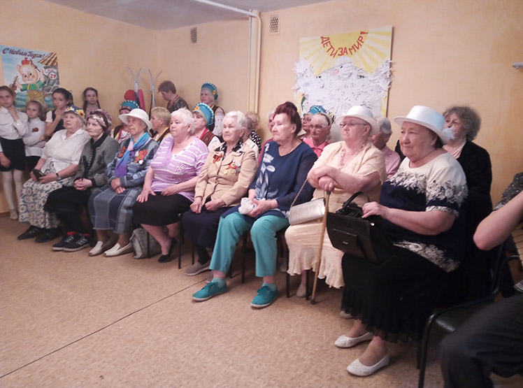 Ветераны тоже не остались в стороне, они исполняли стихи, так, Таисия Андреевна Коряушкина прочитала отрывок из поэмы Маргариты Алигер «Зоя», а председатель Совета Ветеранов Александра Яковлевна Гусельникова - стихотворение «Родина Мать». Под аккомпанемент баяниста В.Н. Накорякова ветераны пели военные песни. Концертная программа закончилась тёплым застольем с пирогами, варениками и с украинским салом.