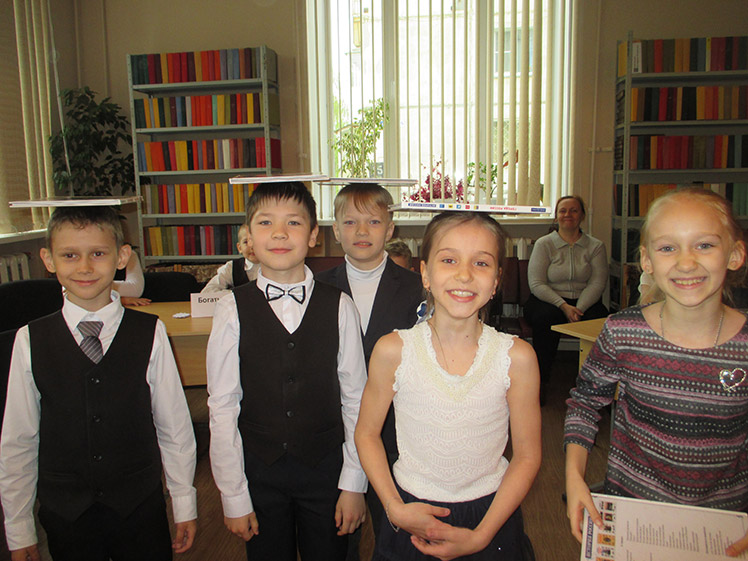 Ребята разделились на три команды: «Мечтатели», «Следопыты», «Богатыри». Соревнования начались с разминки, учащиеся отвечали на вопросы ведущего и зарабатывали жетоны. Интеллектуальная игра «Собери библиотеку» позволила юным читателям проявить знания детской литературы и авторов, с этим заданием все команды справились на «отлично».