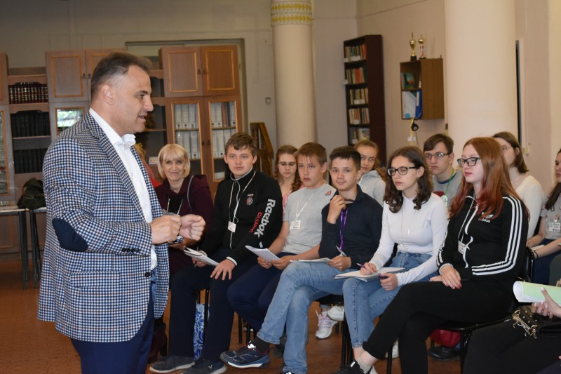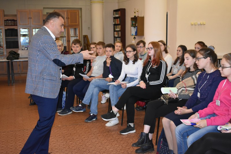 Разговор состоялся на тему делового общения. Сергей Михайлович поделился своим опытом, давая при этом и теоретические знания. Он предложил ребятам попробовать себя в разных ролях, много импровизировал, разыгрывая различные ситуации. Помимо русского языка и речи ребята почерпнули знания из делового этикета, задавали вопросы гостю.