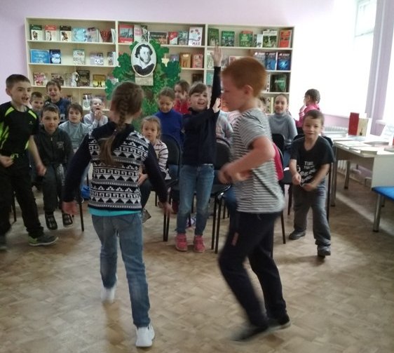 Дети соревновались на ловкость и смекалку в подвижной игре с препятствиями «Зайчата и бесенята», в конкурсе«Петушки». В заключение мероприятия ребята полистали страницы красочных изданий сказок Пушкина, представленных на просмотре.