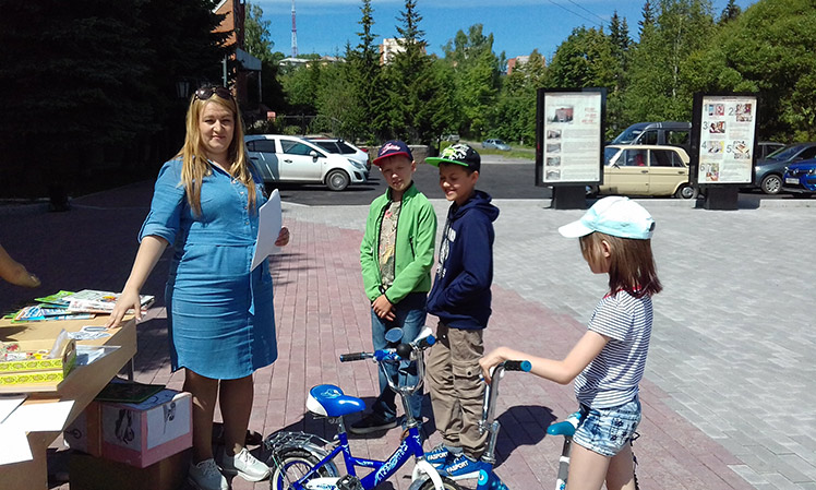 19 июня сотрудники сектора обслуживания детей ЦГБ на площади возле библиотеки организовали для юных читателей необычное мероприятие, которое объединило любителей книг, чтения и ! велосипедов.