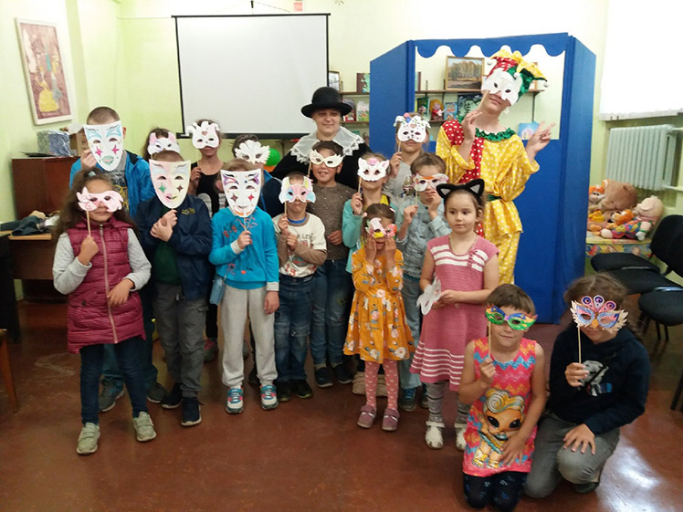 Участники встречи, придя в библиотеку, попали в мир театра. Во время беседы ребята узнали о разных видах театра. При этом вспоминали театральные профессии, знакомились с историей появления театров. Дети овладели техникой постановки кукольного спектакля, сыграв и озвучив сказку «Курочка ряба», танцевали в балете, пели оперу, изготавливали театральные маски.