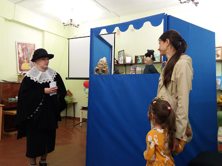 Не обошлось мероприятие без сказочных героев: веселого Петрушки и вредной старухи Шапокляк. Юные читатели помогли Петрушке вспомнить, что он скоморох из передвижного балаганчика, артист одной из самых первых русских театральных постановок.