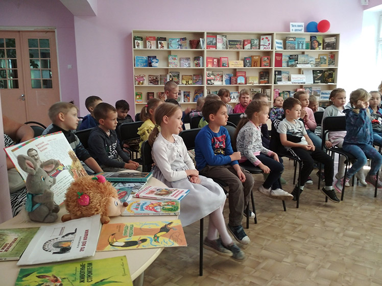 Библиотекарь рассказала малышам о детстве и творчестве писателей, познакомила с их книгами, которые повествуют о волшебном мире леса, необычных птичьих голосах и хитрых повадках братьев наших меньших.