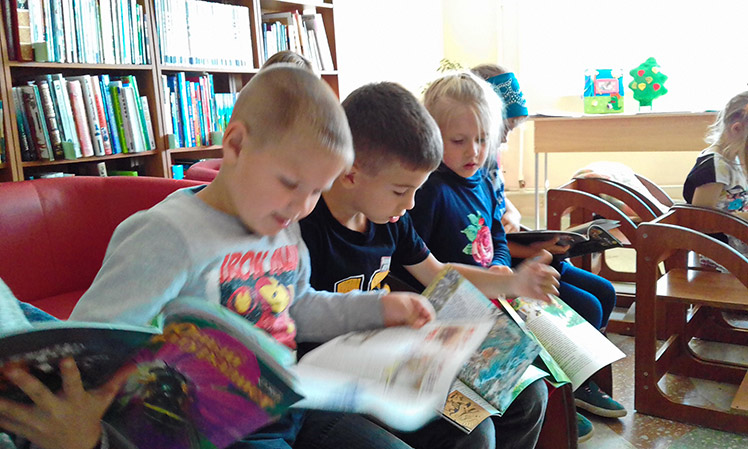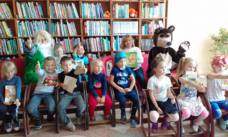 Ребята отгадали загадки на грибочках, поиграли с весёлым старичком-лесовичком и маленьким мишкой. Детсадовцы активно приняли участие во всех конкурсах и играх. Также маленькие читатели не только познакомились с выставкой книг Виталия Бианки, но ещё и почитали его рассказы самостоятельно.