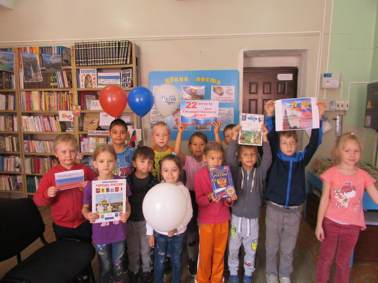 Игровая программа для дошкольников «Гордо реет флаг державный» организована в детской библиотеке №8. Дети из детского дошкольного учреждения №96 узнали много нового из истории возникновения российского флага, приняли участие в играх «Белый, синий, красный», «Собери флажок», отгадывали пословицы и поговорки о Родине и флаге.