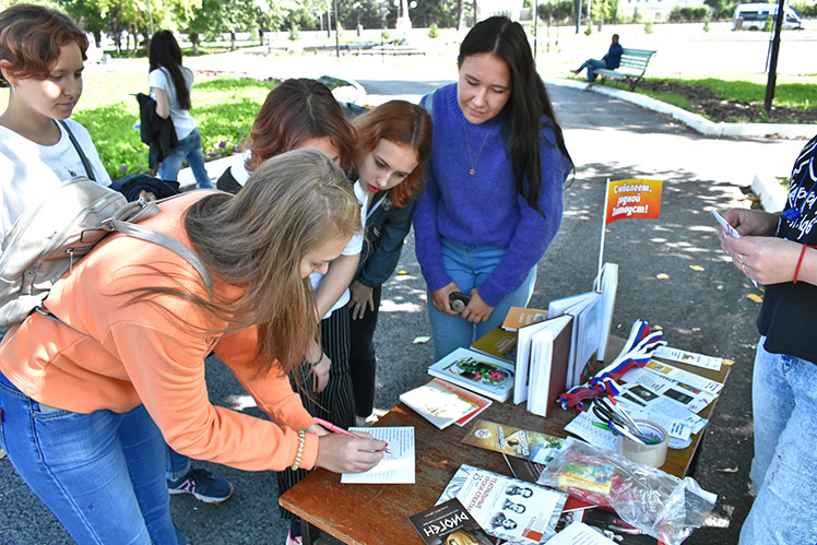 25 августа состоялась акция «По литературным тропам Златоуста». В первую очередь всем участникам Акции было предложено измерить свой рост с помощью «Литературного ростомера» и узнать, какую книгу Златоустовского автора они могут почитать согласно своему росту.