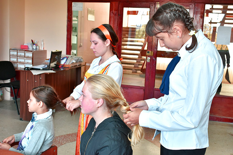 Первое вводное занятие проходило в форме беседы - игры под названием «Жили-были в книжках девочки». Пришедшие школьницы вместе с Василисой Прекрасной вспоминали сказочных литературных красавиц. А также выполняли интересные задания: рисовали платье для Русалочки, помогали Золушке перебирать зерно и вспомнили всех друзей - гномов Белоснежки. Познакомились с историей зарождения причёсок, узнали, какие причёски бывают у разных народов и по каким случаям. В конце занятия маленькие читательницы научились самостоятельно плести русскую косу.