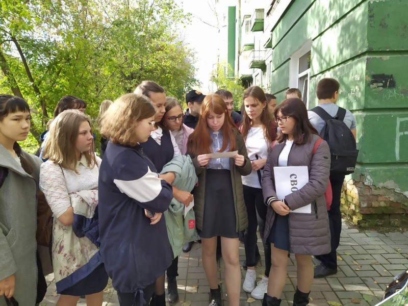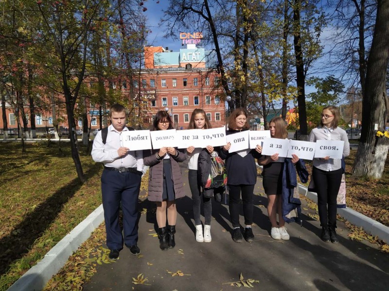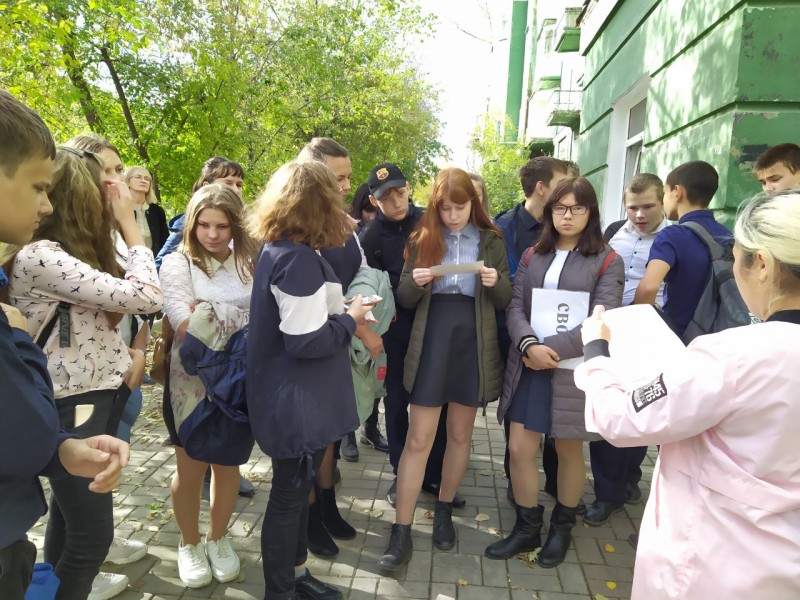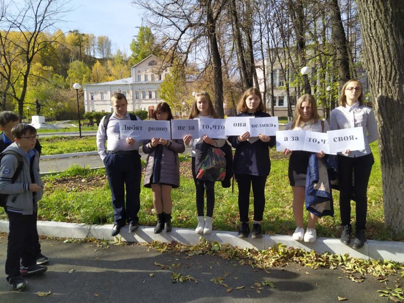 Прогулка для учащихся 8 «А» и 8 «Б» классов МОУ СОШ №3 началась от стен их родной школы. Ребятам необходимо было, пройдя весь маршрут, собрать воедино цитату римского философа Сенеки о любви к Родине.