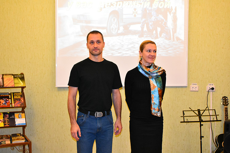 Ведущая встречи Светлана Юрьевна Крохина провела литературную викторину «Мастера детективного жанра и их знаменитые герои». Познакомила слушателей с книжной выставкой, где были представлены как отечественные, так и зарубежные детективы всех видов – от исторических до фантастических. О своих предпочтениях в жанре детектива рассказал читатель библиотеки Юрий Васильевич Анохин. А затем прозвучала премьера песни на стихи Елены Вячеславовны Бондаренко «Женщины в погонах» в исполнении Владимира Уткина.
