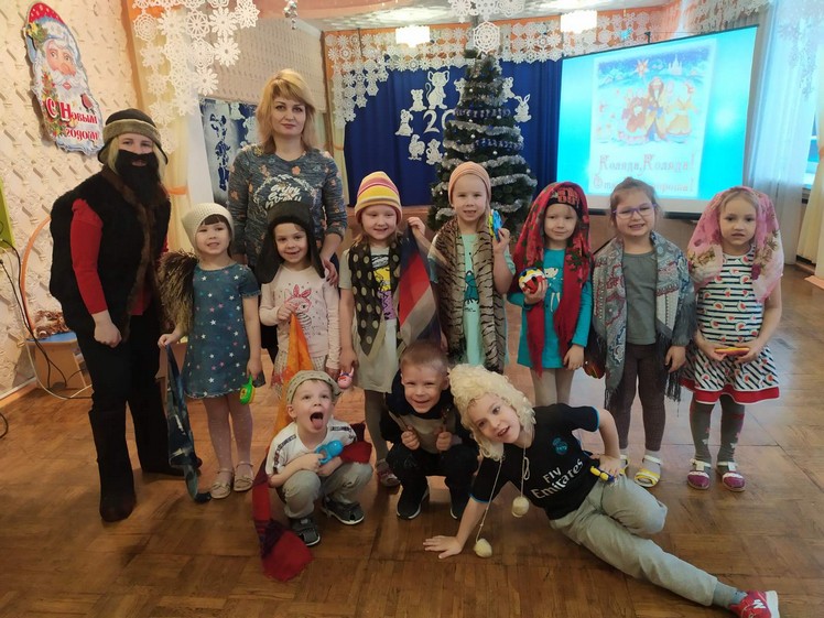 Гостей встретил Скоморох, который задал веселый задор празднику. Предводитель ватаги колядовщиков Мехоноша вместе с ребятами пел колядки, участвовал в забавных святочных играх. Это были русские народные игры («Варежки», «Снег и валенки», «Потолкушки», «Дети, пора домой»). В гостях у ребят также побывала Коза, символ плодородия, земли и урожая. Она провела веселую игру «Капустная карусель» и в дар получила ведерко овса.
