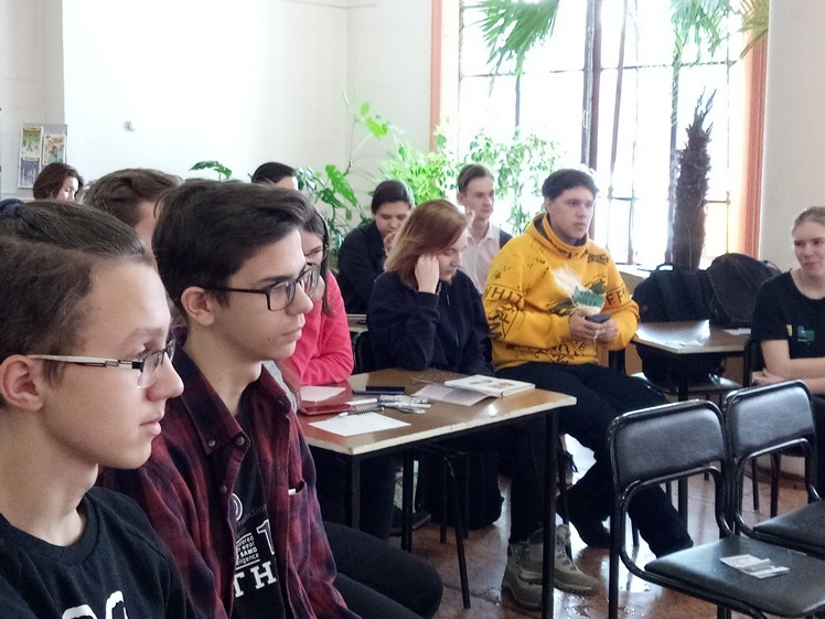 «Разумные существа» - это последнее произведение автора, небольшое по объему и глубокое по содержанию. В нём он обращается к потомкам с призывом быть добрее и человечнее, думать об ответственности за свои поступки. Участники клуба рассуждали о вопросах и проблемах рассказа, о художественных приёмах и выразительных средствах. Много говорили о доброте, как основной теме рассказа. Закончилась встреча творческим заданием «Сорок секунд красноречия». Шибакова Мария, Малозёмова Марина и Гладышев Константин объясняли смысл фразы Льва Толстого: «Добро есть вечная, высшая цель нашей жизни. Как бы мы ни понимали добро, жизнь наша есть не что иное, как стремление к добру».