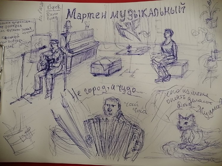 Удивили и зрители. Студенка Златоустовского педагогического колледжа Лилия Газизова оставила свои впечатления от вечера в виде рисунка. Он теперь хранится в библиотечной книге отзывов.