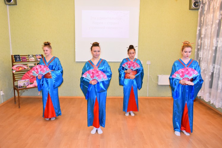 Какая она Корея? Сотрудники сектора комплексного обслуживания во всей полноте ответили на этот вопрос. Присутствующие услышали легенду происхождения красивого названия страны «Чо-Сон», увидели Корею глазами туристов – абсолютно чистую и безопасную. Ответили на вопросы занимательной викторины. В образе обаятельной кореянки предстала библиотекарь Анна Укладова.