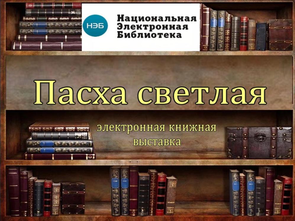 Заведующая библиотекой № 5 Темникова Елена подготовила выставку «Пасха светлая» на основе изданий Национальной электронной библиотеки (НЭБ) НЭБ - это возможность для читателей познакомиться с изданиями, которые ранее были доступны только в стенах крупнейших библиотек России, таких как Российская государственная библиотека и Российская национальная библиотека.