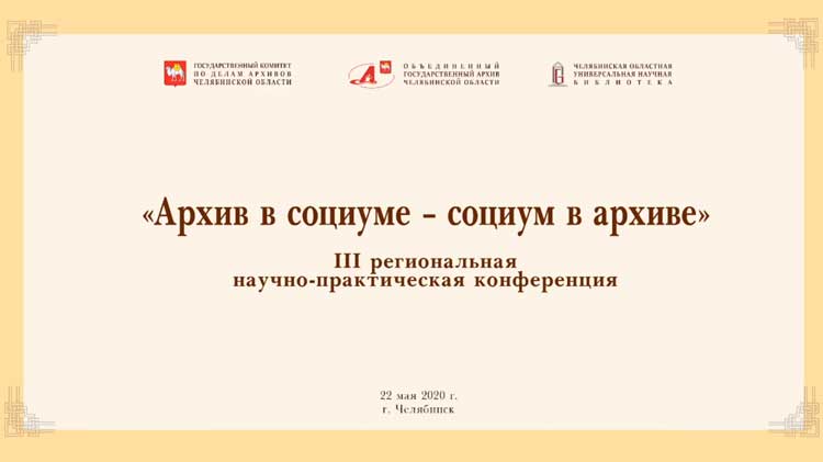 22 мая 2020 года, впервые в онлайн-формате прошла 3-я региональная научно-практическая конференция «Архив в социуме – социум в архиве», посвященная 75-летию Победы советского народа в Великой Отечественной войне. Организаторы конференции – Государственный комитет по делам архивов Челябинской области, Объединенный государственный архив Челябинской области и Челябинская областная универсальная научная библиотека. Более 80 человек: историки, архивисты, педагоги, библиотекари, краеведы, студенты и школьники подключились к видеоконференции, чтобы узнать новое о вкладе региона в Великую Победу. К участию в мероприятии были приглашены и сотрудники информационно-библиографического отдела Центральной библиотеки г. Златоуста.