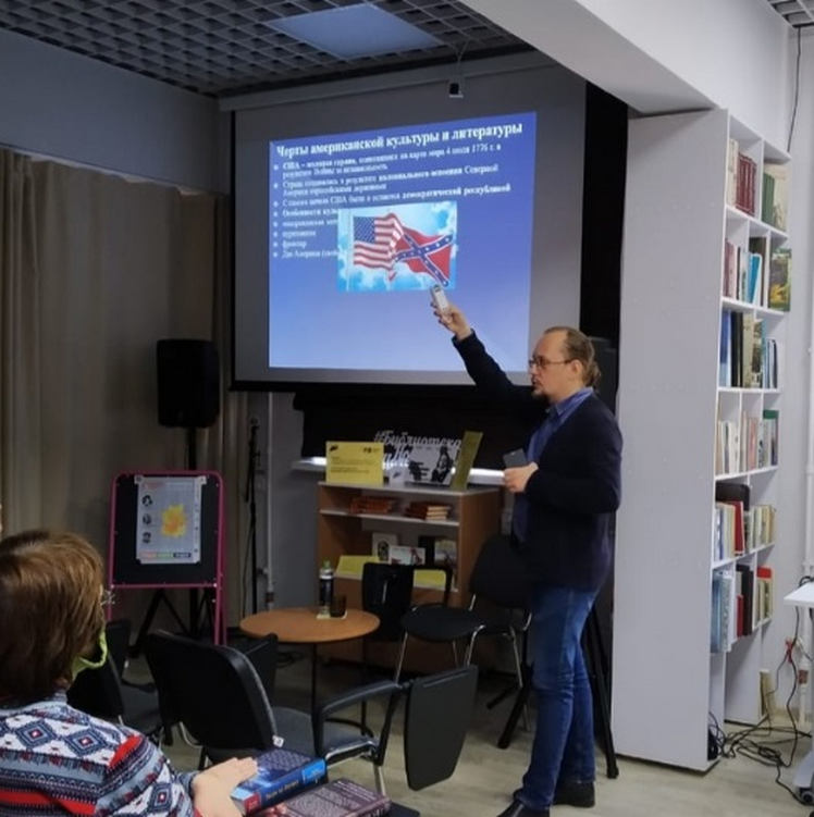 27 сентября в рамках Всероссийского литературного форума #РыжийФест в Златоусте библиотека семейного чтения «Аист» порадовала своих друзей новым событием – увлекательной лекцией по американской литературе. Ее спикером стал кандидат филологических наук, доцент Челябинскогогосударственного университета Александр Сергеевич Полушкин.