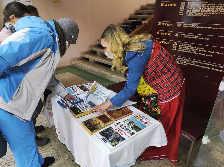 На книжной выставке были представлены книги, рассказывающие по истории культуры многонациональной России.
