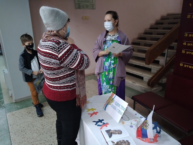 Участники акции читали стихи о Дне народного единства, отвечали на вопросы викторины об истории праздника, собирали пословицы о единстве, раскрашивали бумажных кукол в народных костюмах.