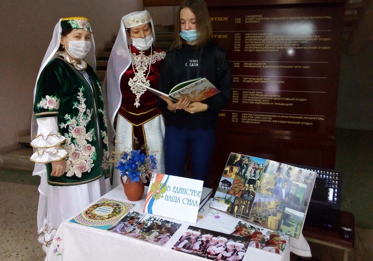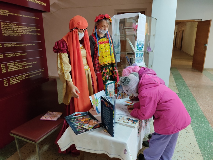Всех пришедших в этот день библиотеку встречали одетые в национальные костюмы библиотекари. В фойе звучала народная музыка и песни о родной стране.