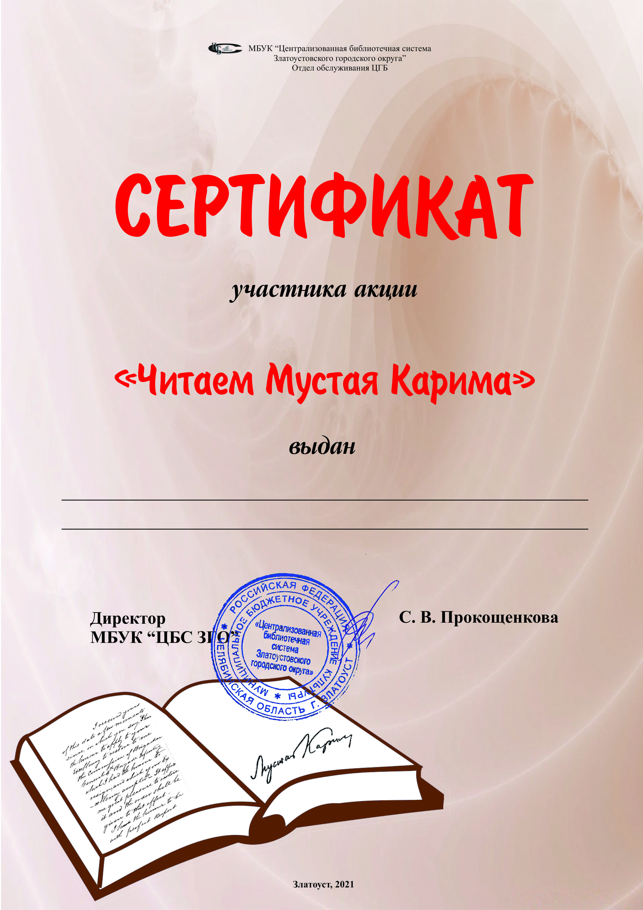 В преддверии Всемирного дня писателя с 24 февраля по 3 марта организована онлайн-акция «Читаем Мустая Карима». Сотрудники отдела обслуживания Центральной городской библиотеки предложили создать видеозапись чтения стихотворения или отрывка из прозаического или драматического произведения Мустая Карима на русском, башкирском или татарском языках и выложить в социальных сетях с хештегом #Читаем Карима.