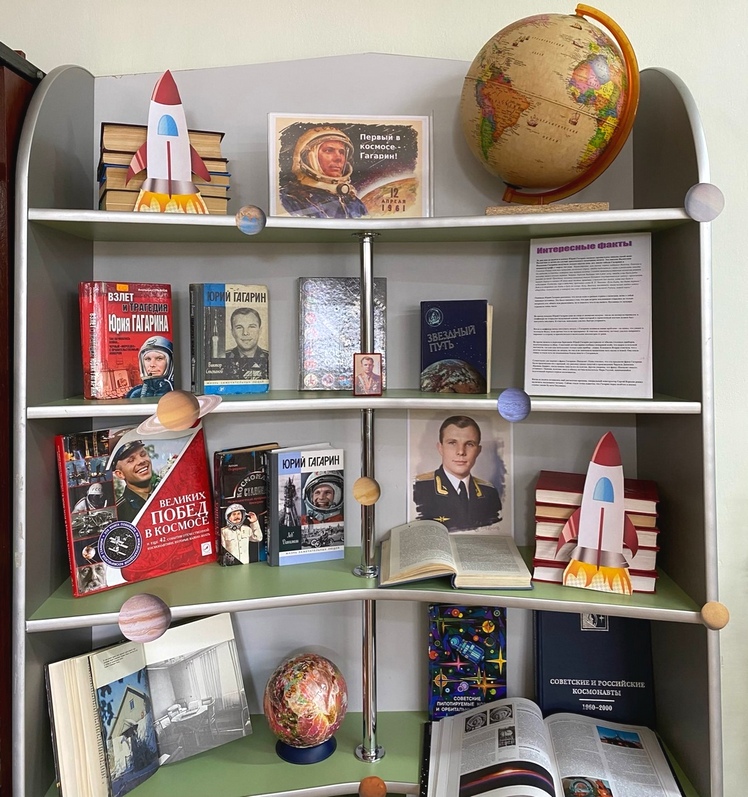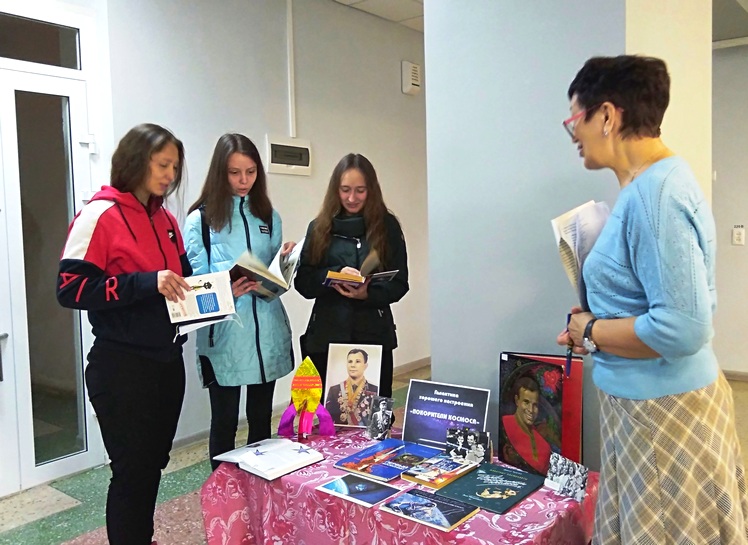 В секторе комплексного обслуживания, зале молодежного чтения и коммуникаций, в секторе искусства и секторе обслуживания детей организованы книжные выставки и просмотры, посвященные Юрию Алексеевичу Гагарину и другим летчикам-космонавтам. Книги дополняли открытки и иллюстрации о космосе, информация о биографиях покорителей космоса.